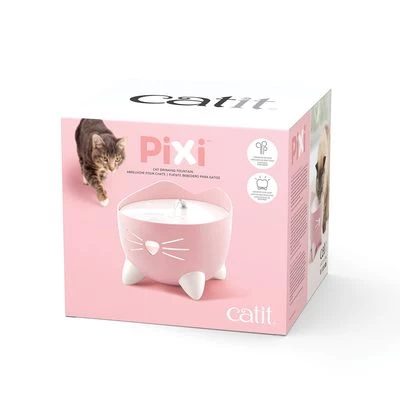 Het oog wil ook wat! De mooie roze Catit PIXI drinkfontein is vanwege zijn schattige ontwerp met pootjes en snorharen een echte blikvanger. Het drinkwater van je kat kabbelt in het reservoir. Dit spoort aan tot drinken en is bij uitstek geschikt voor katten die niets moeten hebben van stilstaand water in een bakje.
