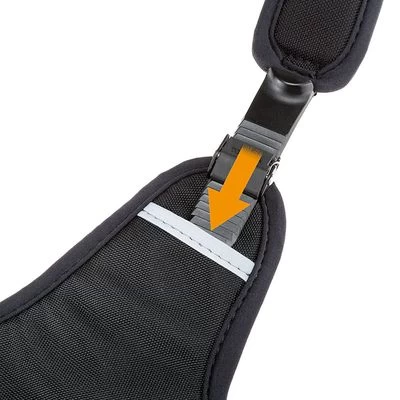 - D-ring aan de achterkant: voor het bevestigen van een riem