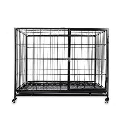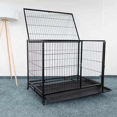 Binnenkooi voor honden tot 50 kg, grote voordeur, klapdak, uitneembare bodemplaat, robuust stalen rooster, met 4 zwenkwielen, veelzijdig inzetbaar, van metaal en kunststof