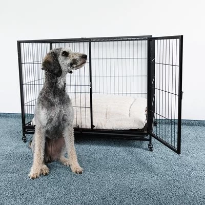 Let op: laat je huisdier langzaam en rustig wennen aan een kort verblijf in de bench. Begin door je huisdier te laten ontspannen in de bench met de deur open. Laat hem daarna pas wennen aan het verblijf in een gesloten bench en verleng de verblijfduur. De bench mag nooit als strafplek worden gebruikt, want het is bedoeld om je trouwe viervoeter een veilige en positieve plek te bieden. De bench is alleen geschikt als verblijfplek van de hond voor enkele minuten/uren, en niet voor permanente huisvesting of als oplossing voor opvoedings- en gedragsproblemen!
