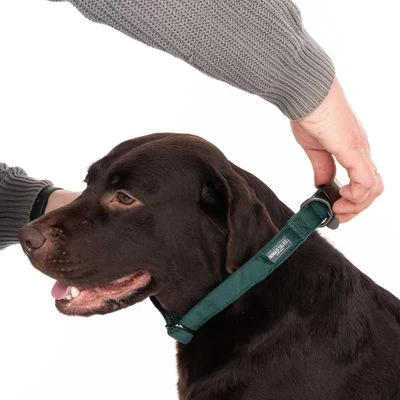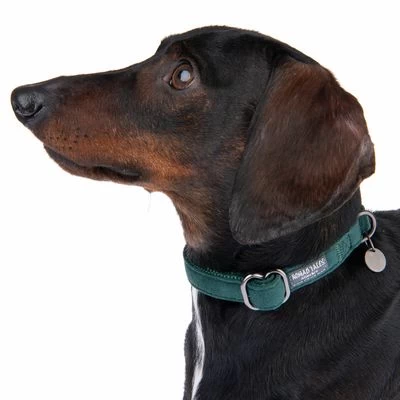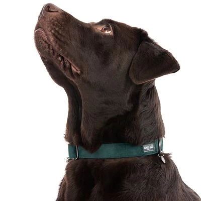 Traploos verstelbare halsband voor honden, in elegante fluwelen look, met grote D-ring, weerbestendig en robuust, leuke details, met drukknoop, gemaakt van polyester en nylon, kleur: groen.