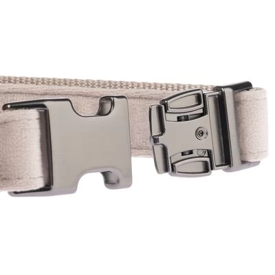 Edele hondenhalsband, in exclusieve fluwelen look, sluiting en ringen van matzwarte metalen elementen, weerbestendige nylon coating, hoogwaardige afwerking, gemaakt van polyester & nylon, kleur: taupe.
