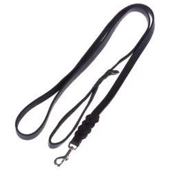 Deze stevige hondenriem gemaakt van zwart rundleer onderscheidt zich door een uitstekende afwerking. Het leer blijft zacht en soepel in alle weersomstandigheden door zorgvuldige smering. Het schuurt niet en zelfs in nat weer ligt de grote lus comfortabel in de hand. Een bijzonder detail is dat de karabijn is verweven in de riem en ook de handgreep is op deze manier verbonden met de riem. Het bedrijf Heim staat bekend om hoge kwaliteit producten. Dus ook de gevlochten lederen hondenriem is naar de beste kwaliteit gemaakt in Duitsland. Dit geeft elk item zijn uniciteit.