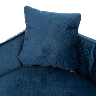 Knuffelbed van fluweelzachte stof voor kleine tot middelgrote honden, dik gevoerd omkeerbaar kussen & klein kussen, hoge rand, lage instap, met antislipbodem, kleur: blauw.