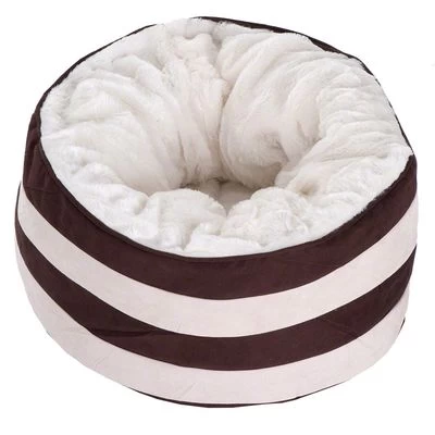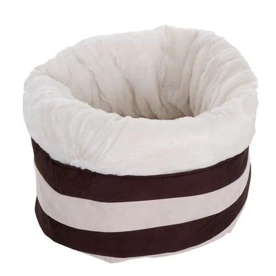 Het bijzondere design van de moderne, ronde sluimermand Mupfel herinnert in vorm en kleur aan een kop cappuccino. De buitengewone hoge rand nodigt uw viervoeter uit om in diepe dromen te verzinken. Knus opgerold kan hij zich omhuld door donzig, zacht pluche verstoppen, gezellig doezelen en luieren.