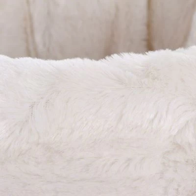 Zeer knusse, ronde sluimermand met extreem hoge en sluimerzachte rand, stof buitenkant in leder-optiek, binnenkant met zacht pluche, met antislip-bodem. Kleur: crème / donkerbruin.