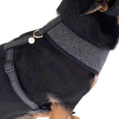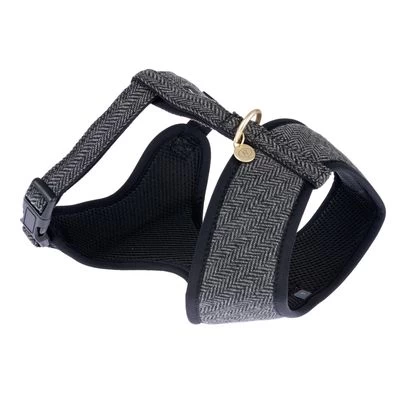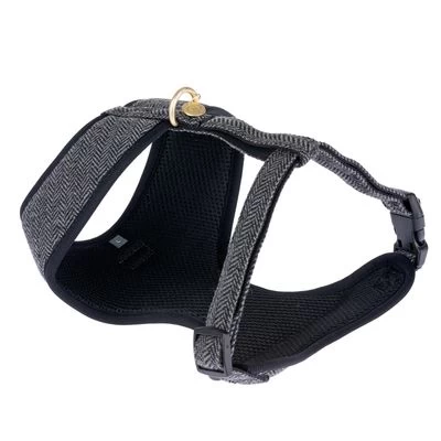 Stijlvol hondentuig in mooie visgraat-look, met comfortabel, met mesh gevoerd borststuk, in maat verstelbaar, zachte stof, gemaakt van polyester & nylon, kleur: zwart.