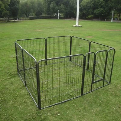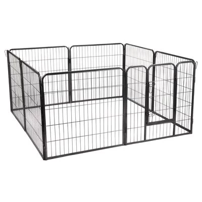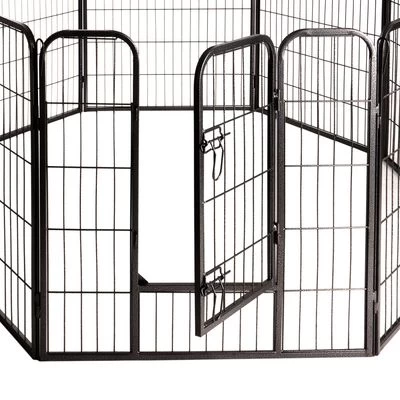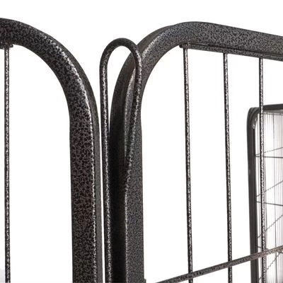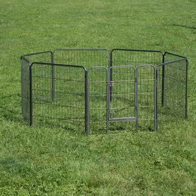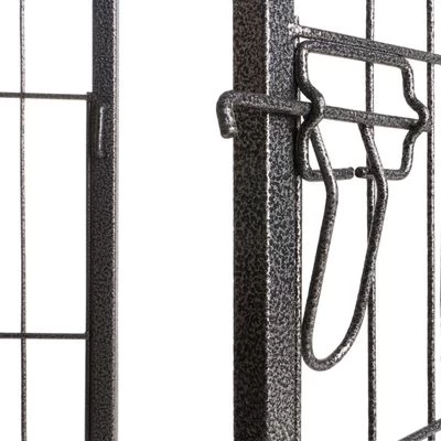 Stabiel puppyhek uit 8 gelakte metalen elementen, diverse opbouwmogelijkheden, snel op- en afbouwen, kleur: zwart / zilver.