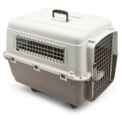 Handige transportbox voor honden. Ideaal voor vliegreizen, met ventilatierooster en afwateringsgroef. Zeer comfortabel, met veiligheidssysteem en kunststof wieltjes.
