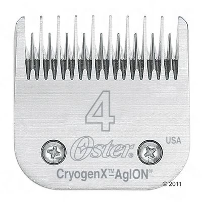 | Oster Nr. 4 Skip Tooth | vooral voor het scheren van lichaamsdelen | 9,5 mm | donzig, krullend, maar ook dikke, zware vacht | z.B. poedel, Bichon Fisé, herdershond, collie |