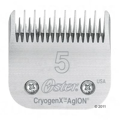 | Oster Nr. 5 Skip Tooth | vooral geschikt voor lichaamscheren | 6,3 mm | donzig, krullend, maar ook dikke, zware vacht | z.B. poedel, Bichon Frisé, collie, herdershond |