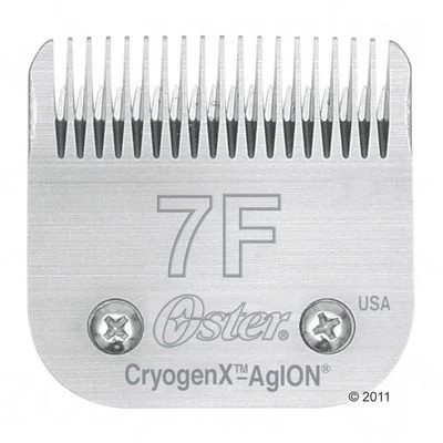 | Oster Nr. 7F | vooral geschikt voor lichaamscheren | 3,2 mm | recht, dradig, maar ook donzige, krullende vacht | z.B. draadhaar-terrier, spaniel, poedel, Bichon Frisé |
