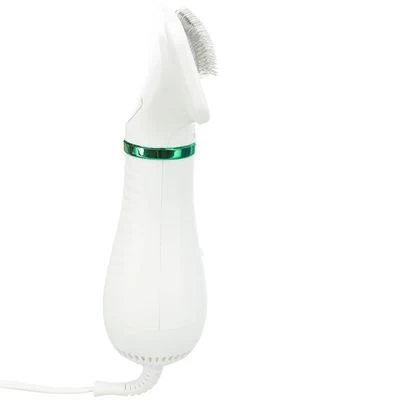 Elektrische hondenborstel met warmeluchteffect. Voor het borstelen en drogen na het baden. Helpt bij het ontharen. Met twee warmtestanden en geluidsarme motor. Voor lang- en kortharige honden.