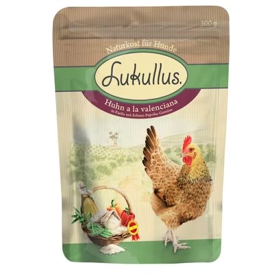 Lukullus maaltijdzakjes in de smaken Italië, Frankrijk en Spanje: de combinatie uit de beste kwaliteit dierlijke proteïnen en typische ingrediënten van het land met een scheutje olijfolie draagt ertoe bij, dat uw hond met belangrijke voedingsstoffen en vitaminen wordt verzorgd – volledig zonder chemische toevoegingen, zoals aroma-, kleur- en lokstoffen. Want de natuur levert alles, wat uw hond nodig heeft. Alle ingrediënten worden vers en behoedzaam verwerkt. Dat behoudt de oorspronkelijke smaak van vlees en groente en stelt het voedingstofgehalte zeker. Lukullus vertrouwt op de kracht der natuur.