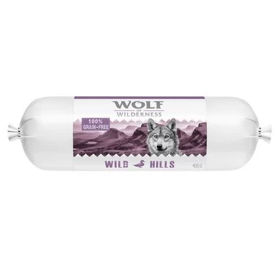 Meer dan 94 % vlees & ingewanden, graanvrij en veelvuldig te portioneren en serveren – het natvoer van Wolf of Wilderness als worst! Single-Protein, met bosbessen, wortels en wilde kruiden.